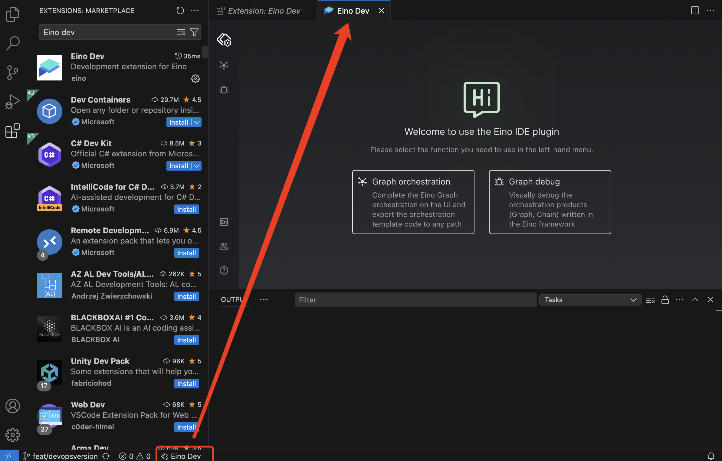 - 在 VS Code 中点击「Extension 图标」,进入插件市场,搜索 Eino Dev,安装即可